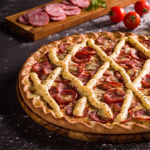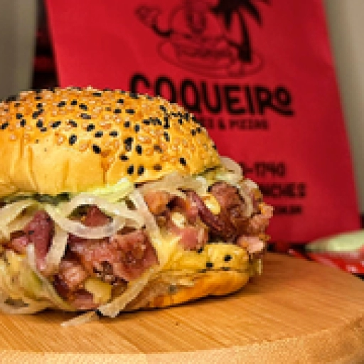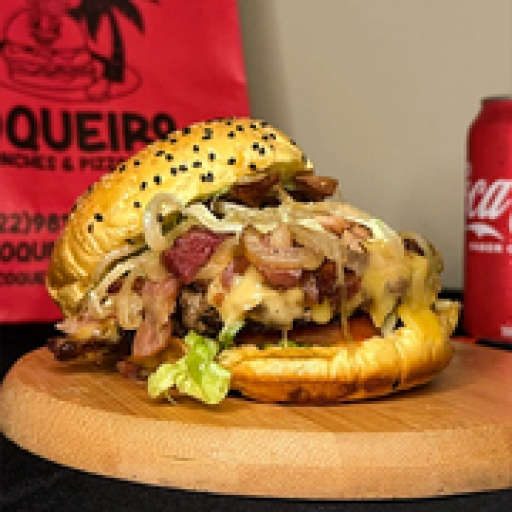 Pão de batata, carne artesanal 120g, queijo prato, calabresa picada e grelhada, bacon crocante, cebola caramelizada, mo... Ver completo