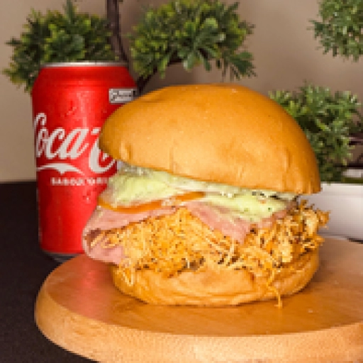 2 carnes, bacon, cheddar, frango, molho, ovo, pão, presunto, queijo, salada